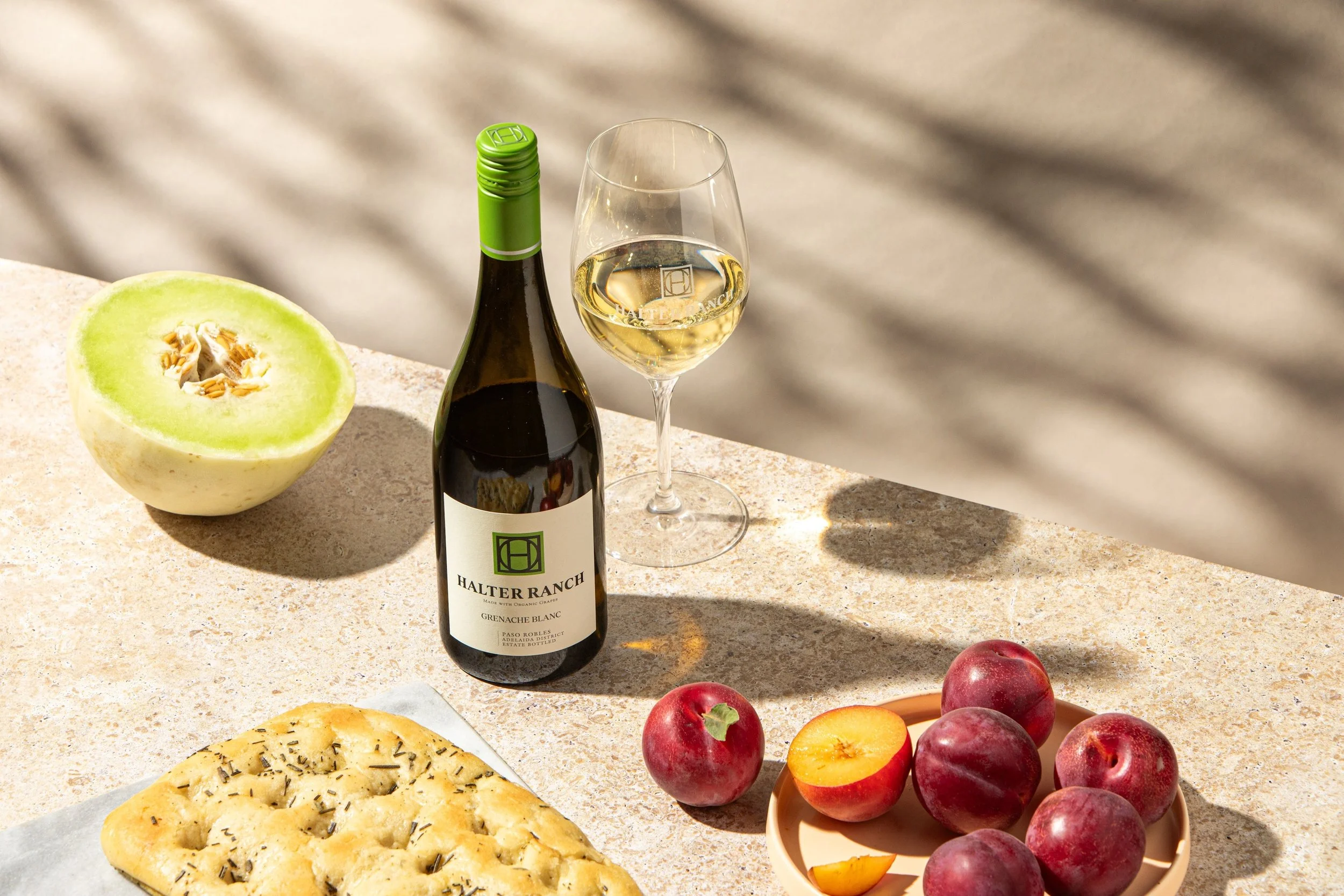 Our 2023 Grenache Blanc has aromas of white peaches, jasmine, apricot, and a touch of honey. The entry is soft and rich, with underlying acidity and flavors of meyer lemon, honeydew, and ripe tangerine. The finish has soft edges from the lees stirring, creating a balanced, mouth-coating texture with great density.